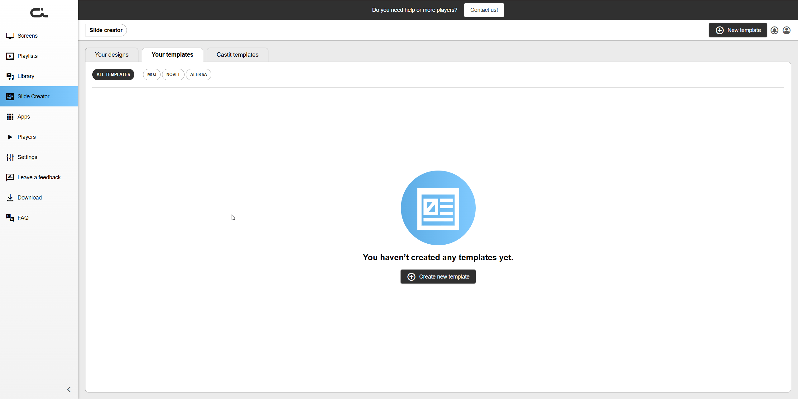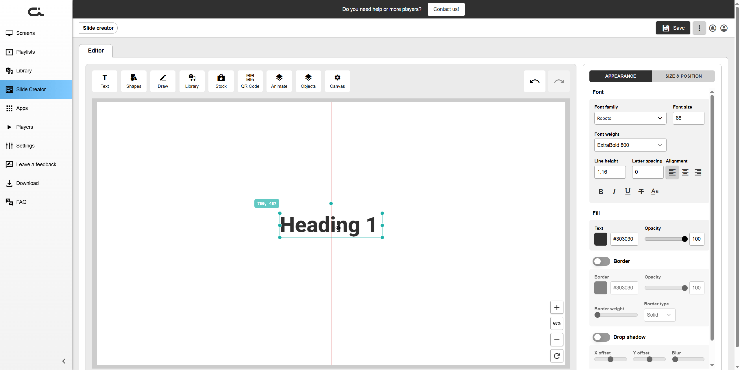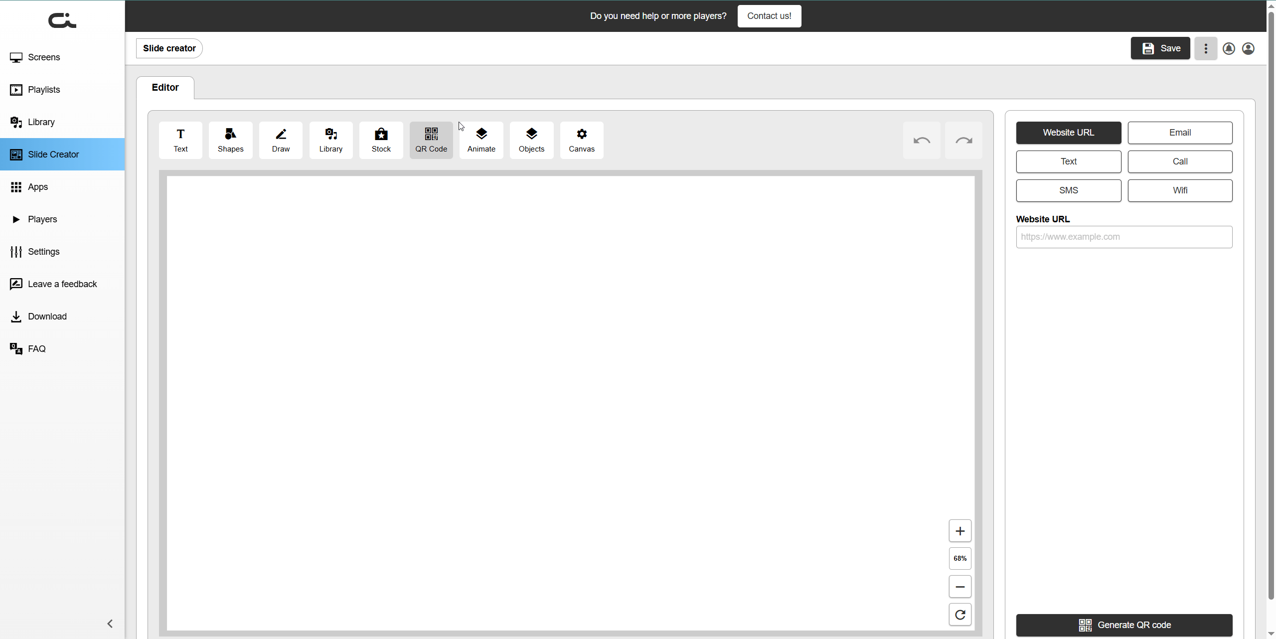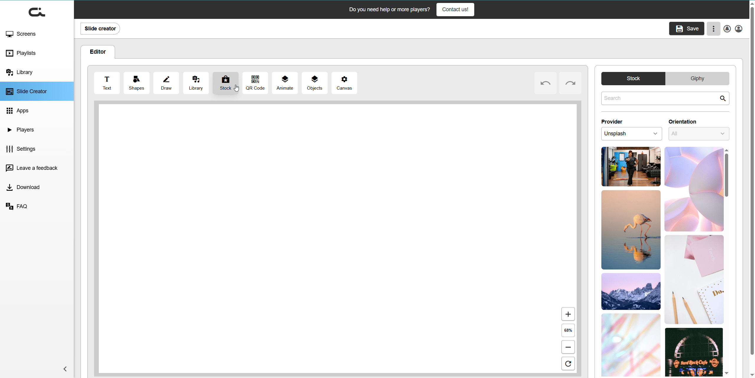 De Diacreator is een krachtige ingebouwde ontwerptool waarmee je custom dia's kunt maken voor je digital signage-schermen, zonder externe ontwerpsoftware.