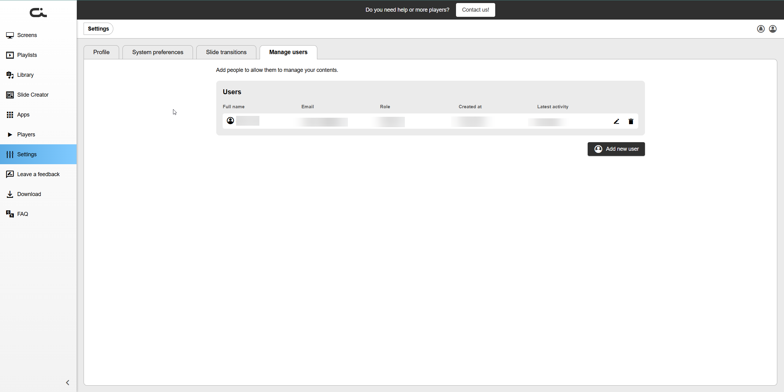 Als je Castit-account meerdere gebruikers ondersteunt, kun je hier teamleden toevoegen en hun toegang beheren. Dit is handig als meerdere mensen de content beheren.